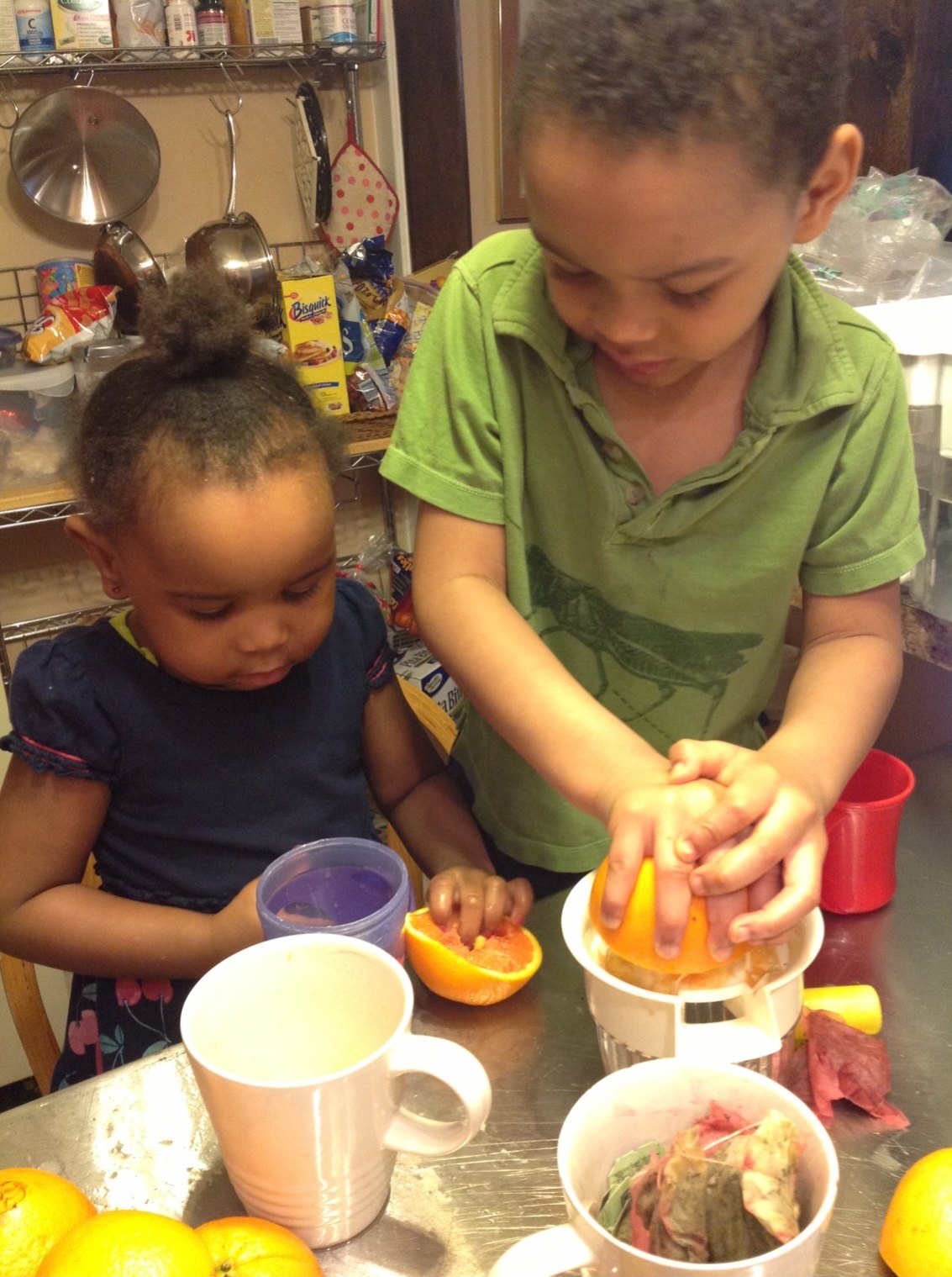 Children involved in food preparation learn about organization, following instructions, nutrition, and healthy eating as family bonds are strengthened.